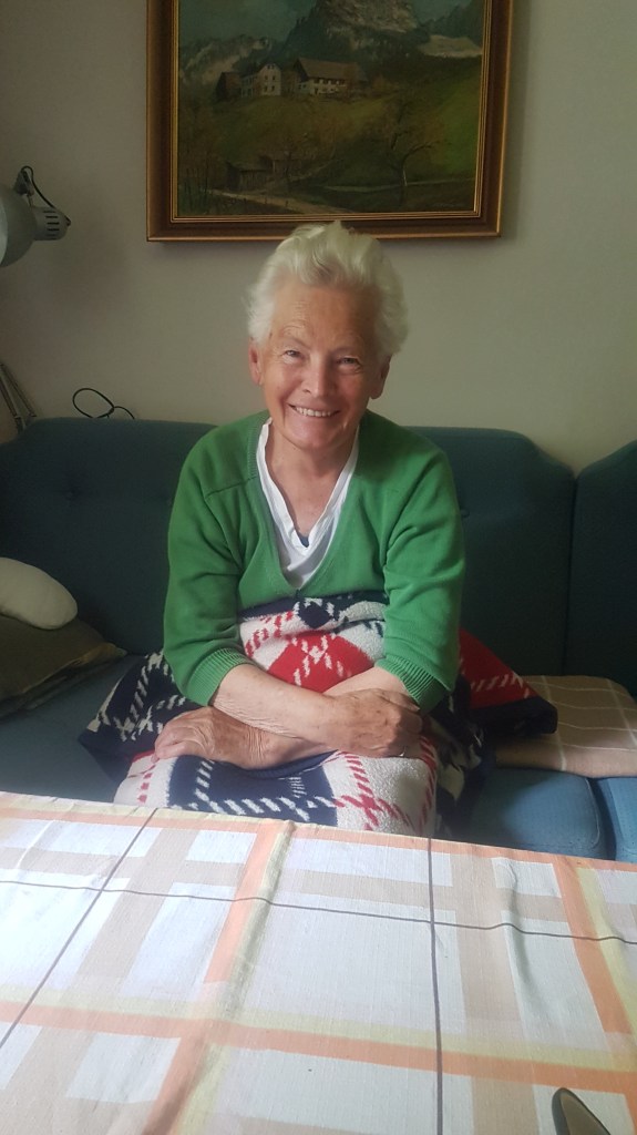 „Der Alexander von der Roswitha oben. Der ist vier, und immer, wenn er zur Haustüre kommt, fragt er, ob ich was Süßes habe. Und dann sagt er: Aber wenn du nix Süßes hast kannst mir ein Brot auch geben, ich weiß eh, wo du es hast, geh in den Keller und hol eins. Dann hol ich ihm eins, wenn wenn er dann hinaufgeht zum Haus von der Roswitha sehe ich ihn schon hineinbeißen, in den ganzen Laib.“
