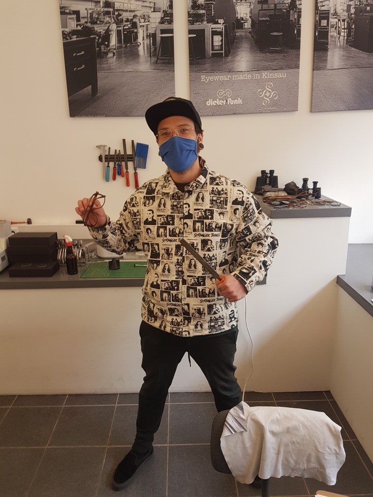 Der Sohn einer Augenarzt und –optikerdynastie aus Linz drehte als junger Mann ein paar zusätzliche Runden, bevor er schließlich doch noch seine Berufung fand – Augenoptiker! – und in Innsbruck mit 21 die Lehre – bei Fielmann! – begann, „so richtig mit Kastl einräumen und allem, obwohl ich als Maturant gleich in die Meisterschule hätte gehen können, aber das wollte ich nicht, und das war total wichtig für mich.“ Als Dreijähriger, wenn er unruhig war, setzen ihn die Eltern vor die Sehtestmaschine, und er war glücklich.