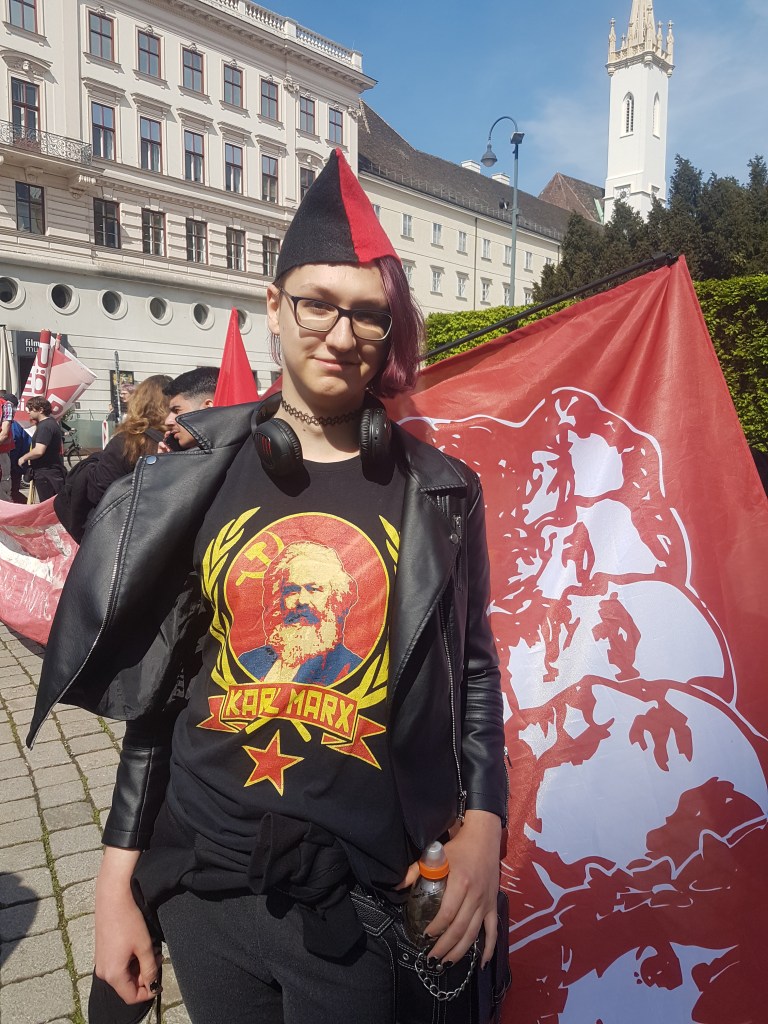 Anna ist 23, es geht ihr gut, als ich sie vor der Albertina beim Hridlicka-Denkmal anläßlich der Feierlichkeiten zum Ersten Mai treffe. Sie nimmt an der Veranstaltung der KPÖ teil, „obwohl ich kein Mitglied bin. Aber es geht jetzt darum, die Lebenskosten zu deckeln, die Lebensmittelpreise, die Energiepreise, und natürlich demonstriere ich für den Frieden.“ Sie lebt alleine im 17. Bezirk in einer Eigentumswohnung und studiert an der Uni Wien Jus, sie will eine Anwältinnenkarriere einschlagen.