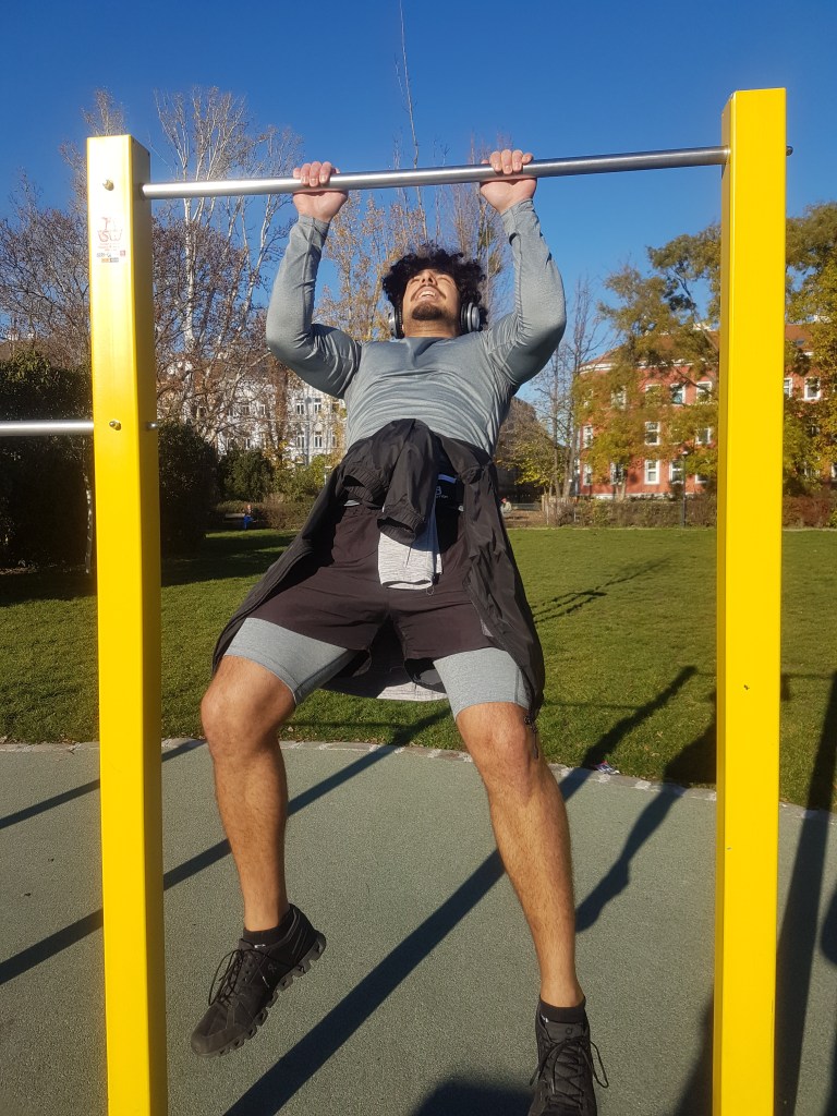 Zuletzt war Ali Kellner im Everybodys Darling, einer Bar im 1. Bezirk. Der beste Cocktail dort heißt „Everybodys Schokoladekuchen, da kommt Mozart Schokoladenlikör zartbitter hinein und ein bisserl Marmelade dazu, schmeckt sehr gut, geht fast in Richtung Sacher.“ Vielleicht wird er bald Veloce Kurier für die Coronanummer 1450 und Coronatests durchführen, „da sind wir in Gesprächen.“ Zuvor genießt er noch die Novembersonne und hört beim Trainieren drum and bass. Er hängt sich wieder an die Stange und macht 20 bis 30 Klimmzüge.
